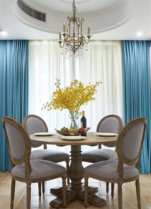 美国人很重视交换,在进食进程中也不会过分强调“食不言”的规矩,更多的是互动交换。因此,餐厅是必不可少了。美式田园家具特点是一般都会有可供多人使用的方形餐桌,深红棕色的实木材料,结实耐用,并且不会退色。而可伸缩餐桌椅组合上平常会有精致繁复的雕花,以显现无与伦比的质感和做工,可以算作是一套完全的艺术品。