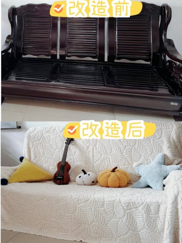第二步:提前量好尺寸,做好沙发套,把沙发套套上。如果实在不想花钱,可以直接用家里不要的床单套上,再用防跑固定器固定。
