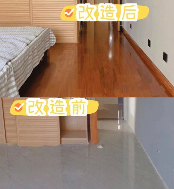 第三步:贴上自己喜欢颜色、风格的地板,木地板或者SPC地板都可以。