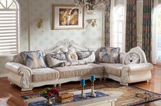[凯撒豪庭]全实木框架沙发 高档提花刺绣植绒布转角沙发