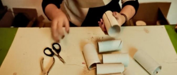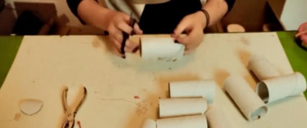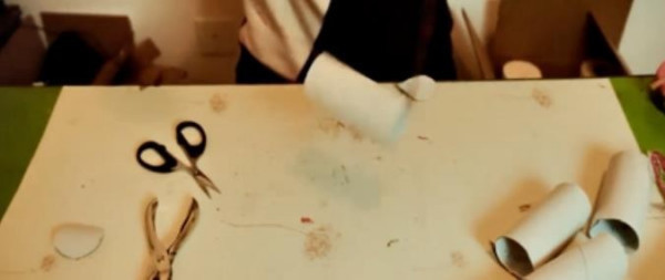 2、在其中一个上面剪个洞,把第二个卷纸筒插进去可以无限延伸。