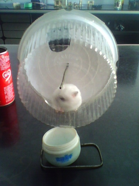 注:铁丝对于仓鼠就相当于一个单杠,还外带磨牙功能。