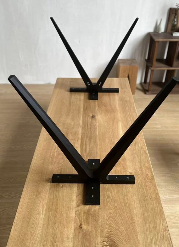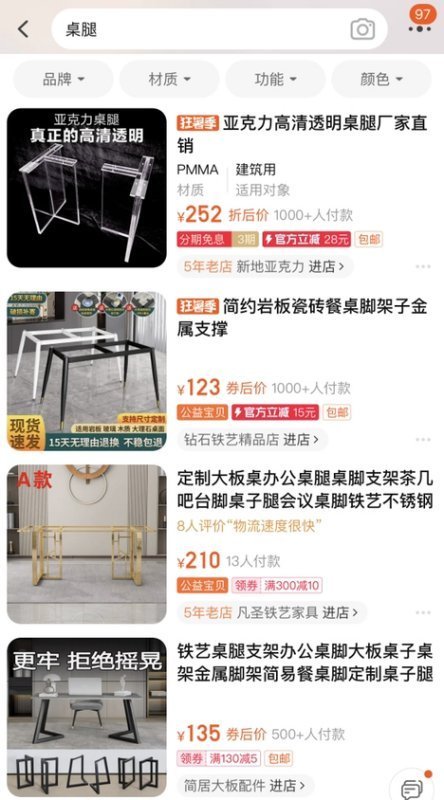 腿根据餐桌板大小买一张配套桌腿,建议网上购买,网上有很多卖桌腿的店,可以多看看款式,选择一个喜欢的样子,再跟商家沟通好餐桌面板尺寸,按照面板尺寸来做。