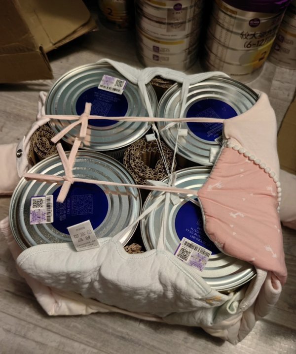 把多个奶粉罐缠透明胶固定住,把纸壳裁到和奶粉罐一样的高度,然后就卷卷卷,塞塞塞,不要塞太多,四个面是平的就行