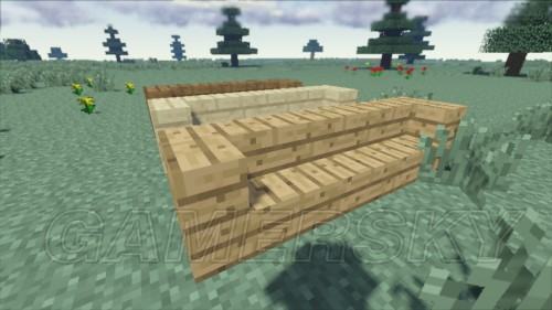 椅子,楼梯放在地上亦可,各种材料都可以,有MOD的话可以坐上去,椅子の升级版,小沙发,在原有的椅子的左右边放上不写字的木牌就可以,不过木牌只有一种颜色(橡木色)所以搭配其他木头时会有些别扭,