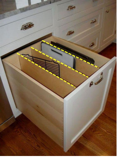 另外建议不管是抽屉还是柜子里的隔板统统设计成活动的,这样后期想要更改会方便很多,大不了拿掉就好,如果专门定制这种抽屉,后期想要收纳其他的大物件就只能换抽屉了,浪费钱。