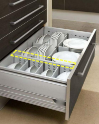 如果是专门用来收纳盘子的抽屉,在抽屉底部加一块洞洞板也是很实用的,这块洞洞板是根据家里的盘子来进行量身定制的,它既能起到固定的作用,又能起到沥水架通风的效果。