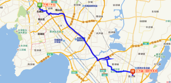 无锡火车站到江苏蠡口国际家具城 45.34公里 / 用时34分钟