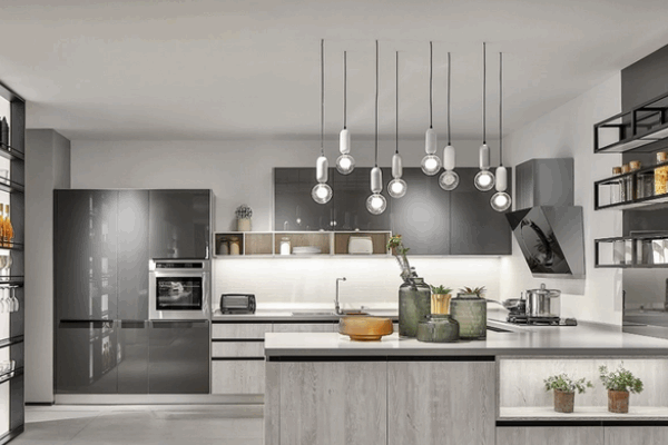 1、橱柜:指厨房中存放厨具以及做饭操作的平台。使用明度较高的色彩搭配,由五大件组成,柜体,门板,五金件,台面,电器。