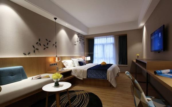 客房的地毯要耐用、防污甚至防火,尽可能不要用浅色或纯色的,现今,很多商务型酒店的客房地面是复合木地板,既实用又卫生,而且温馨舒适;客房家具的角最好都是钝角或圆角的,这样不会给年龄小、个子不高的客人带来伤害;窗帘的轨道一定要选耐用的材料,遮光布要选较厚的,帘布的皱褶要适当,而且选用能水洗的材料,若只能干洗的话,运营成本会增加,得不偿失;行李台的设计往往不受重视,很多酒店客房的行李台的木质台边的漆被撞的凹则碧凸不平,若采用这样的行李台其软包部分最后能由平面转到立面上来,并且有50CM左右的厚度,可以防止行李箱的碰撞,也可以采用活动的行李架,但是墙上要做好防撞的设计,有的酒店的防撞板是18MM的厚玻璃,既新颖有个性,又实用。还可采用耐磨的板式家具,耐磨,抗划伤。
