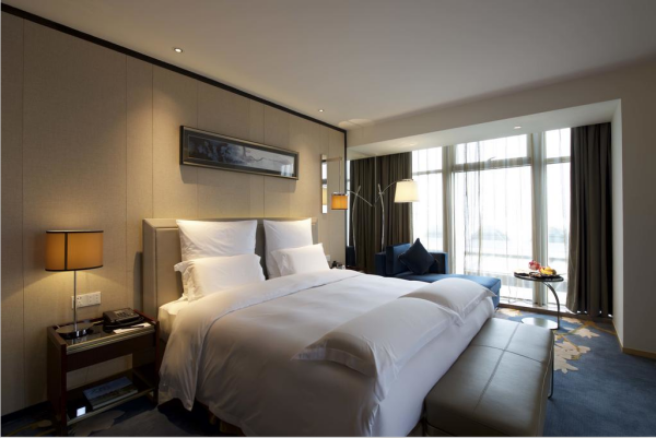 客房的地毯要耐用、防污甚至防火,尽可能不要用浅色或纯色的,现今,很多商务型酒店的客房地面是复合木地板,既实用又卫生,而且温馨舒适;客房家具的角最好都是钝角或圆角的,这样不会给年龄小、个子不高的客人带来伤害;窗帘的轨道一定要选耐用的材料,遮光布要选较厚的,帘布的皱褶要适当,而且选用能水洗的材料,若只能干洗的话,运营成本会增加,得不偿失;行李台的设计往往不受重视,很多酒店客房的行李台的木质台边的漆被撞的凹则碧凸不平,若采用这样的行李台其软包部分最后能由平面转到立面上来,并且有50CM左右的厚度,可以防止行李箱的碰撞,也可以采用活动的行李架,但是墙上要做好防撞的设计,有的酒店的防撞板是18MM的厚玻璃,既新颖有个性,又实用。还可采用耐磨的板式家具,耐磨,抗划伤。