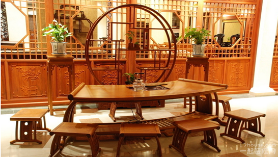 红酸枝家具因为其使用红酸枝木材,其木纹在深红色中常常夹有深褐色或者黑色条纹,给人以古色古香的感觉,所以吸引了众多喜爱中式风格装修的消费者的目光。