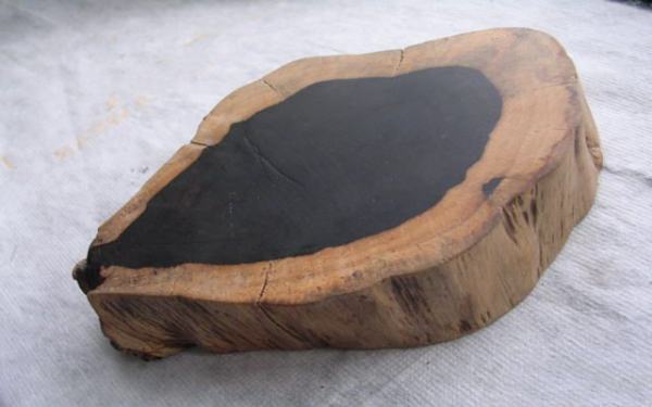 黑檀木心边材区别明显,边材白色(带黄褐或青灰)至浅红褐色;心材黑色(沌黑色或略带绿玉色)及不规则黑色心材(其深浅相间排列条纹)。