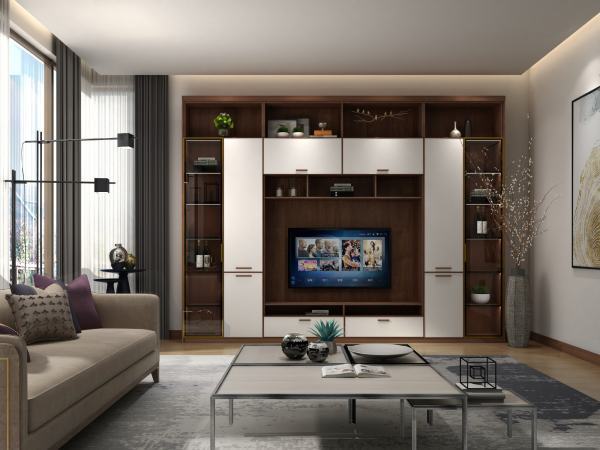 可以选择对称均匀、端正稳健的明清款式电视柜,如果不怕麻烦的可选一些有雕刻/镂空的款式。颜色上黑白灰是最为稳定的,还有复古系的红、黄、蓝、绿色也有应用在电视柜的选择上。