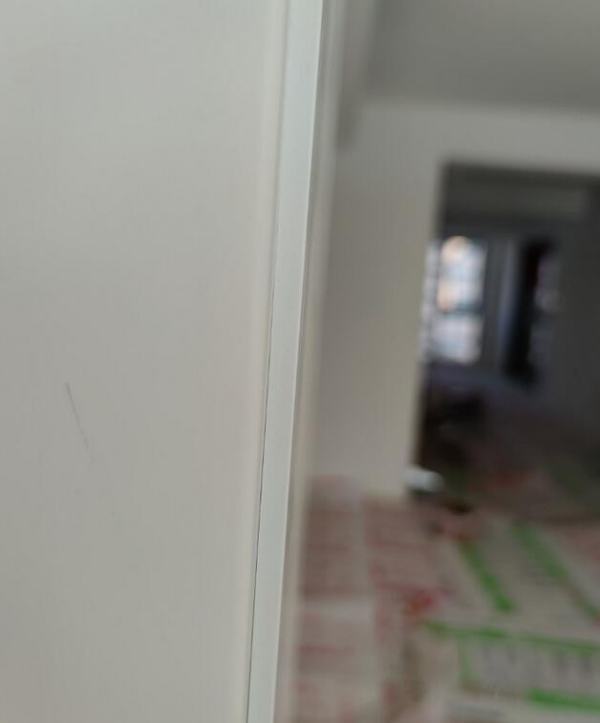 木门返工三次,还是存在很多未解决的问题。白色木门存在明显色差,反馈后工厂说是工艺问题,无法解决。因为第一次有个木门尺寸完全不对加上另外个门套做错了(该做门套的地方没做,不该做的地方做了),第二次木门师傅重新来安装的时候我特意咨询了一下,原来木门和其中一层门套是烤漆的,另一层门套是贴皮的,所以这是偷工减料的工艺?-图