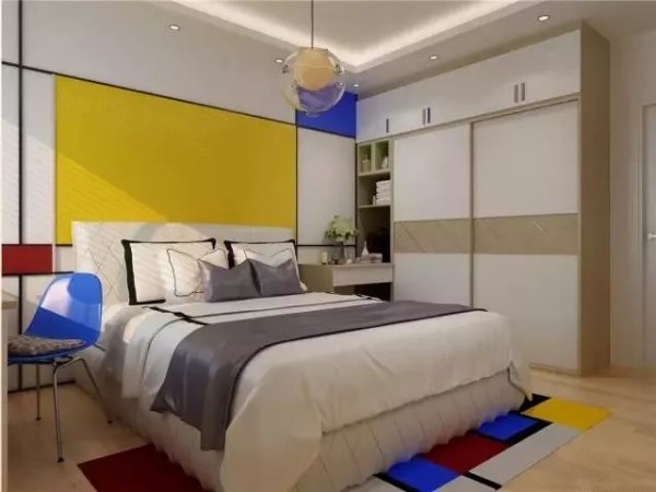 (1)有凹位:本方案利用凹位打造了入墙衣柜,衣柜做成衣柜到顶的趟门衣柜。在空间利用率上大大的得到了发挥,让整个空间也变得规整划一。