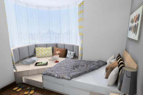 ▲例如遇到这种弧形或者梯形飘窗,有的人基本上都放弃使用;而有的人却设计成这样,打扮一番就是别人羡慕都没有的浪漫角落。