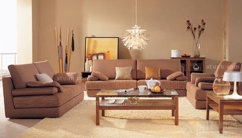 3、颜色。以浅淡、干净的色彩为主,布艺配饰采用深咖深灰的色调,温暖之中又又不会太单调,和谐的色调搭配给人安全感和舒适感。