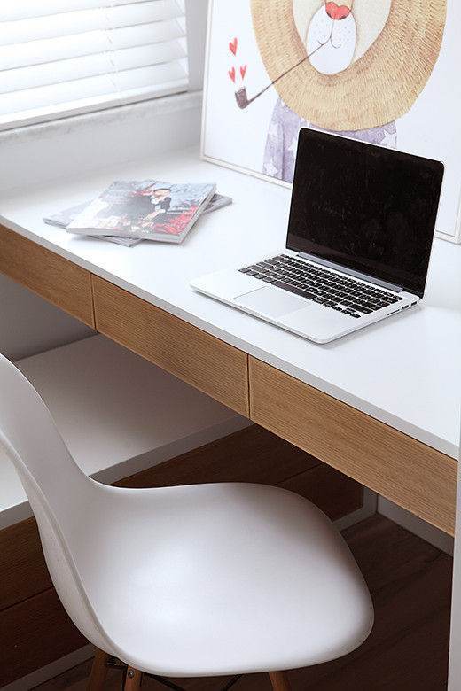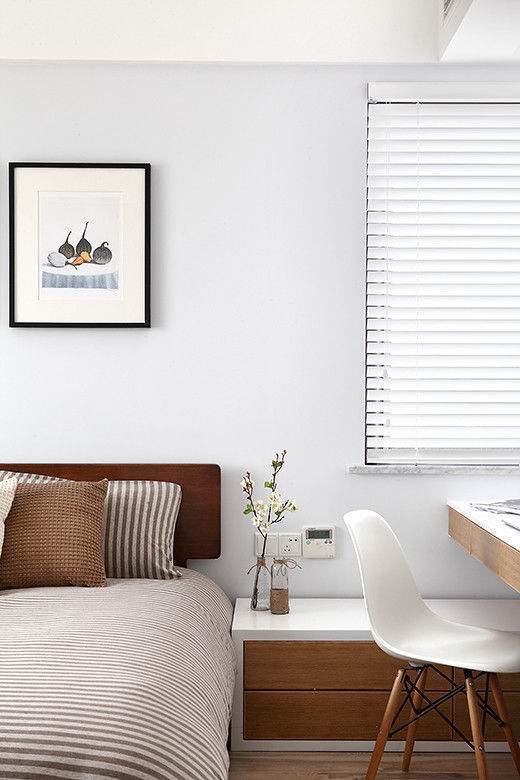 家居色彩的选择上,偏向浅色如白色、米色、浅木色。常常以白色为主调,使用鲜艳的纯色为点缀;或者 以黑白两色为主调,不加入其它任何颜色。空间给人的感觉干净明朗,绝无杂乱之感。