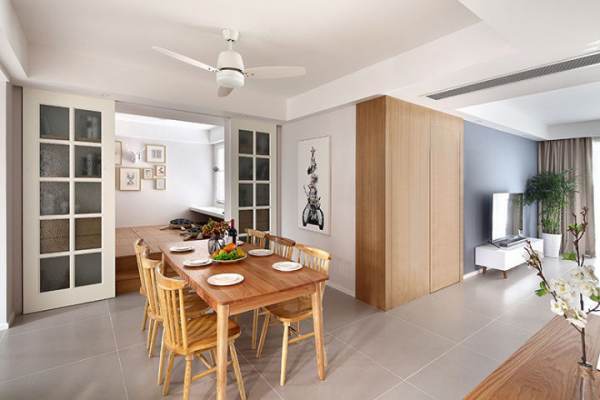 这类样式的装扮更加倾向于室内面积宽敞、内外通畅,并且最大程度的引入自然光,在居室平面设计中追求流畅感,墙面、地面、顶棚以及家具陈设乃至灯具器皿等,均以简洁的造型、纯洁的质地、精细的工艺为其特征。
