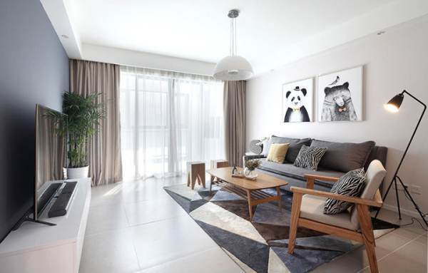 以浅淡、干净的色彩为主,布艺配饰采用深咖深灰的色调,温暖之中又又不会太单调,和谐的色调搭配给人安全感和舒适感。北欧家具以简约著称,具有很浓的后现代主义特色,注重流畅的线条设计,代表了一种时尚,回归自然,崇尚原木韵味,外加现代、实用、精美的艺术设计风格,正反映出现代都市人进入新时代的某种取向与旋律。