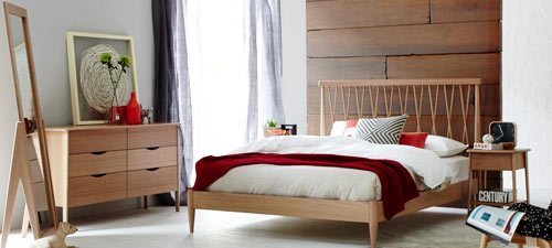 直线与柔和曲线的结合构勒出线条简洁的家具外观,材质多采用桦木、松木、枫木。沙发体态轻盈,木质框架或外露,或包裹在纯色的厚棉布下。
