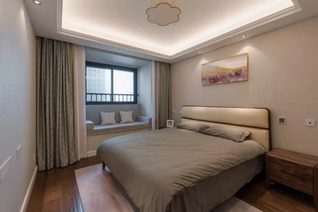 第一步:先要确定卧室的风格,新中式风格表现得是中西结合的气氛,卧室里边也可以设计成简洁的现代式风格,这种形式的卧室很适合在外工作的白领。因此,整个卧室的设计就可以力求简洁、避免凌乱,让整个卧室都充满现代品位。 第二步:确定好卧室的风格就能够很容易的摆放家具,首先重要的是床的摆放,床摆放在卧室的中间能够方便人接近,而且会让通向床的道路通畅无阻,这样摆放会使得房间看起来更大。总体来说,新中式装修的卧室家具的摆放追求和谐,让人看起来感觉整洁、有序就可以。 第三步:地毯也算是卧室装修中的一个装饰物,在装修时可以选一块铺设在床和衣柜之间,这样能够使得床和衣柜看起来更和谐。而且有了地毯的装饰,也能显示出一种淡淡的中国风的气息,也正好把新中式的设计理念表现得淋漓尽致。对称式摆法。以床为中心,床头靠墙,与床并排左右两边分别摆设大橱、五斗橱床的另一头左右两边分别放置餐桌和写字台。这样就形成以床为中心的左右两边橱与橱对称、台子与台子的对称。看起来宽敞、整齐、简洁。 分组成摆法。根据不同的使用要求,把家具分成几个组进行摆设。床头和床的一边紧靠墙,与床头并排放床边橱作为睡卧家具组中间放餐桌,桌四边各放一把椅子,作为会客、用餐家具组。这样摆设条理清晰,使用上也比较方便。 卧室中巧放置沙发。沙发供日常起坐及会客之用,单人沙发一般都成对使用,中间放置一小茶几供放烟具茶杯之用。双人或三人沙发前要放一长方形茶几。沙发应放置在近窗或照明灯具的下面,这样从沙发的位置看整个房间,感觉明亮。同时由于从沙发的位置观看整个房间的机会最多,因此应特别注意布置的美观,尽可能不使家具的侧面,或床沿对着沙发。