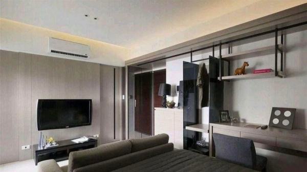 3、对于平开门及周边小柜的处理:对于整个房间不大,同时装修已完成的消费者,可以选择平开门或折叠门做的柜体,但如果在在柜旁边要多放一个小柜(电视柜或梳妆柜之类),则要注意柜体结构,建议不要采用平开门,这样从视角上看有点像一个大人拖着一个小孩,不好看,最好小柜做成横放的抽屉柜,这样效果为一体化