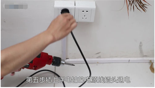 6、插上手电钻的电源线插头,通电后转两秒钟,观察手电钻的钻头是否安装稳固。
