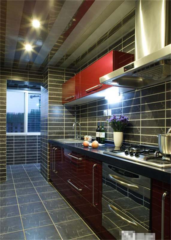 2、玄关处、简单得利索的规划。宽阔的空间,视觉舒展放松,现代化的设备、深木色玻璃装饰墙面、金色的天花、精致的吊灯,一切都那么和谐舒适。